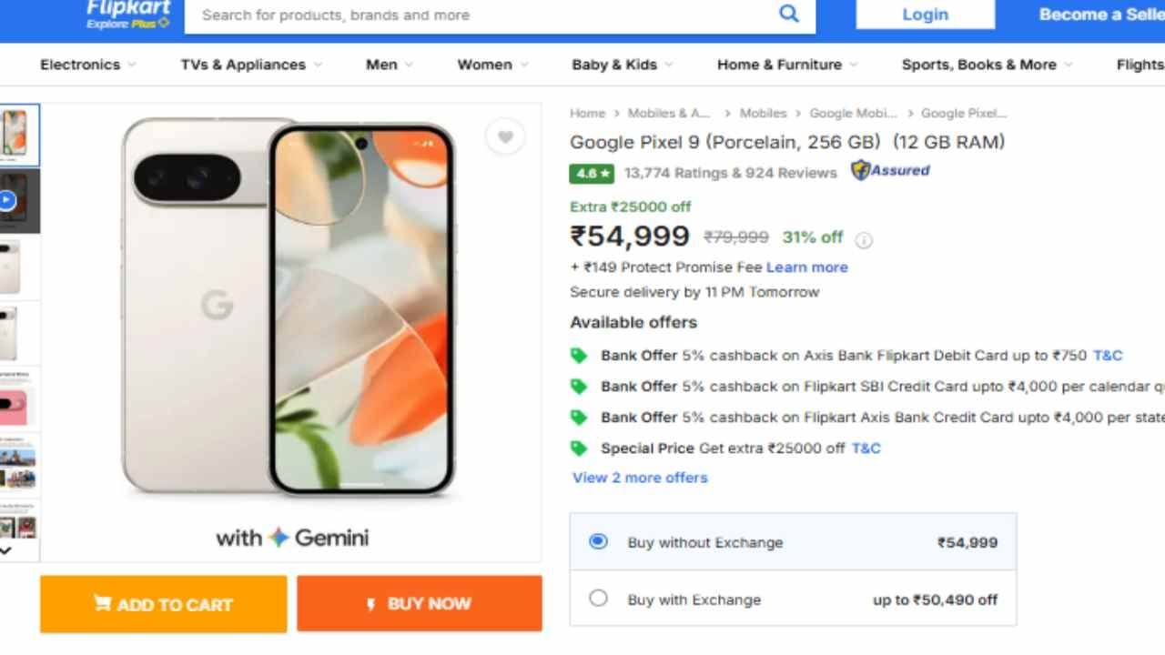 Google’s 12GB RAM + 256GB storage variant is listed for Rs 79,999. You can buy it at a 31% discount on the Flipkart sale, bringing its price down to Rs 54,999. However, you can still purchase it at an even lower price through offers.