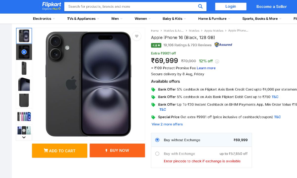 Apple launched the base model of the iPhone 16 series in September of last year, with a starting price of Rs 79,900. However, same phone is currently available on Flipkart for Rs 69,999 without a bank offer. In addition, the company is offering bank discounts on this phone, which will allow you to buy the phone at an even lesser cost by using the ICICI Bank Credit Card EMI option and receiving a discount of up to Rs 1250.
