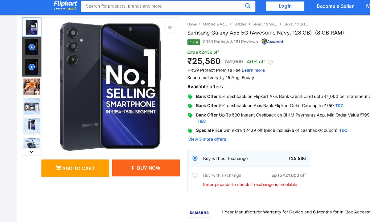Flipkart Freedom Sale: Flipkart is offering an excellent deal of around Rs 13,500 on the Samsung Galaxy A55 5G. This type of increase can greatly reduce the price of updating your phone. For many years, Samsung’s A-series has been a favorite among consumers seeking a balance between stability and brand trust.