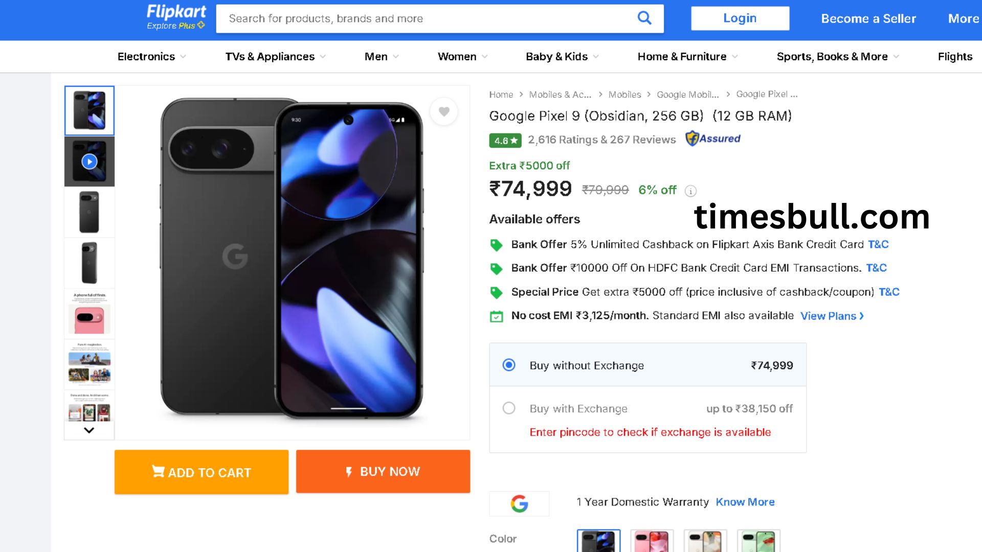 When the Google Pixel 9 was first released in India, it priced Rs 79,999. This flagship smartphone is now available on Flipkart for Rs 74,999. This indicates that the e-commerce platform is providing a Rs 5,000 phone discount. Also, you can save an extra Rs 7,000 on EMI credit card purchases with HDFC Bank. You can trade in your old smartphone to save even more money.