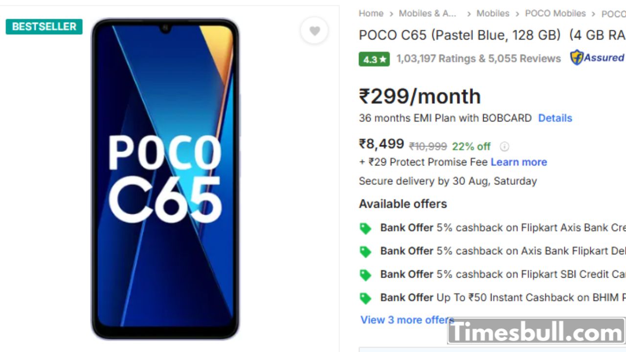 Today, a tremendous discount offer is going on on POCO C65. The original price of this phone was ₹10,999, but now it is available for just ₹8,499. Meaning a discount of ₹2,500, which is almost equal to 22% off. At this price point, POCO C65 becomes an even more attractive deal, because you are getting a phone with strong specifications within the budget range.