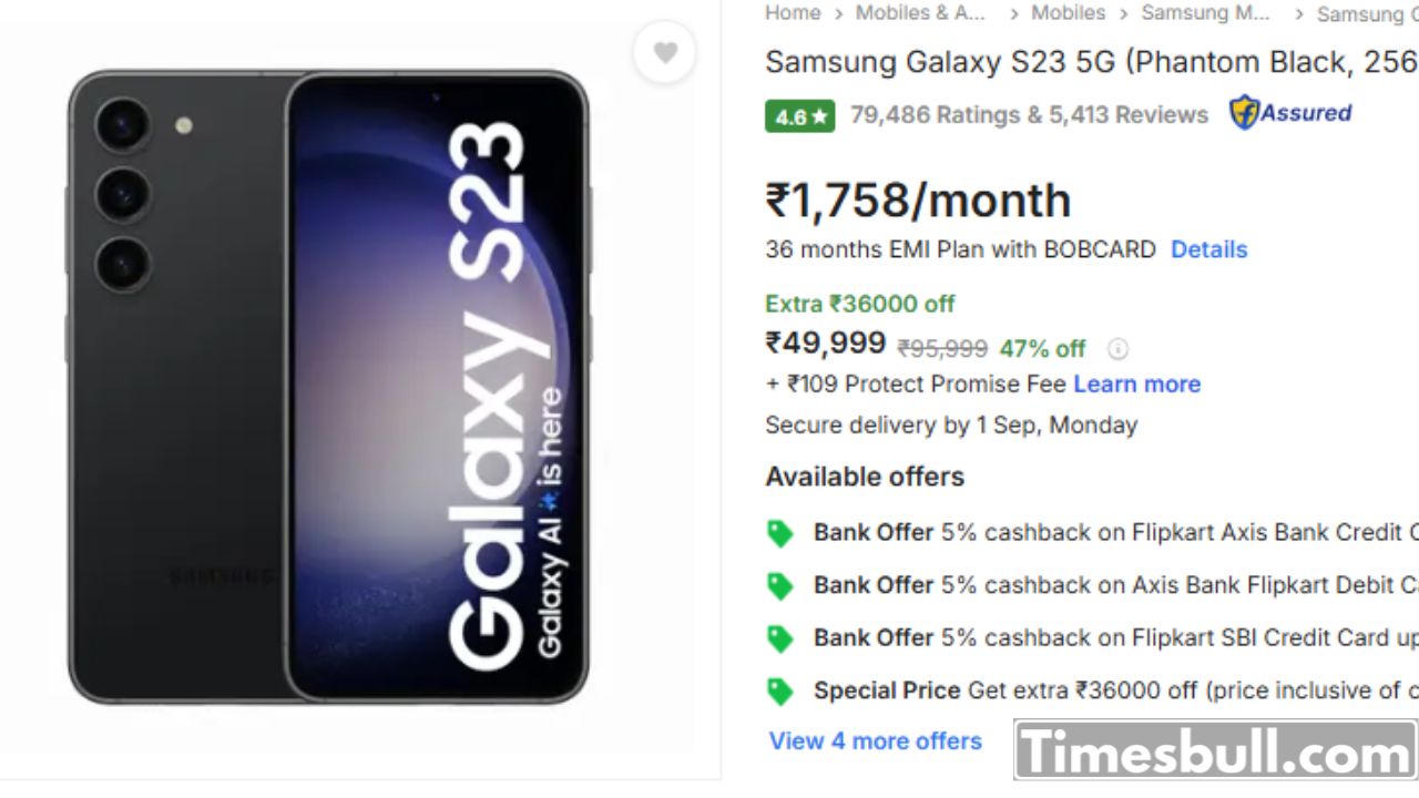 Flipkart Sale Today Offer on Samsung Galaxy S23 5G