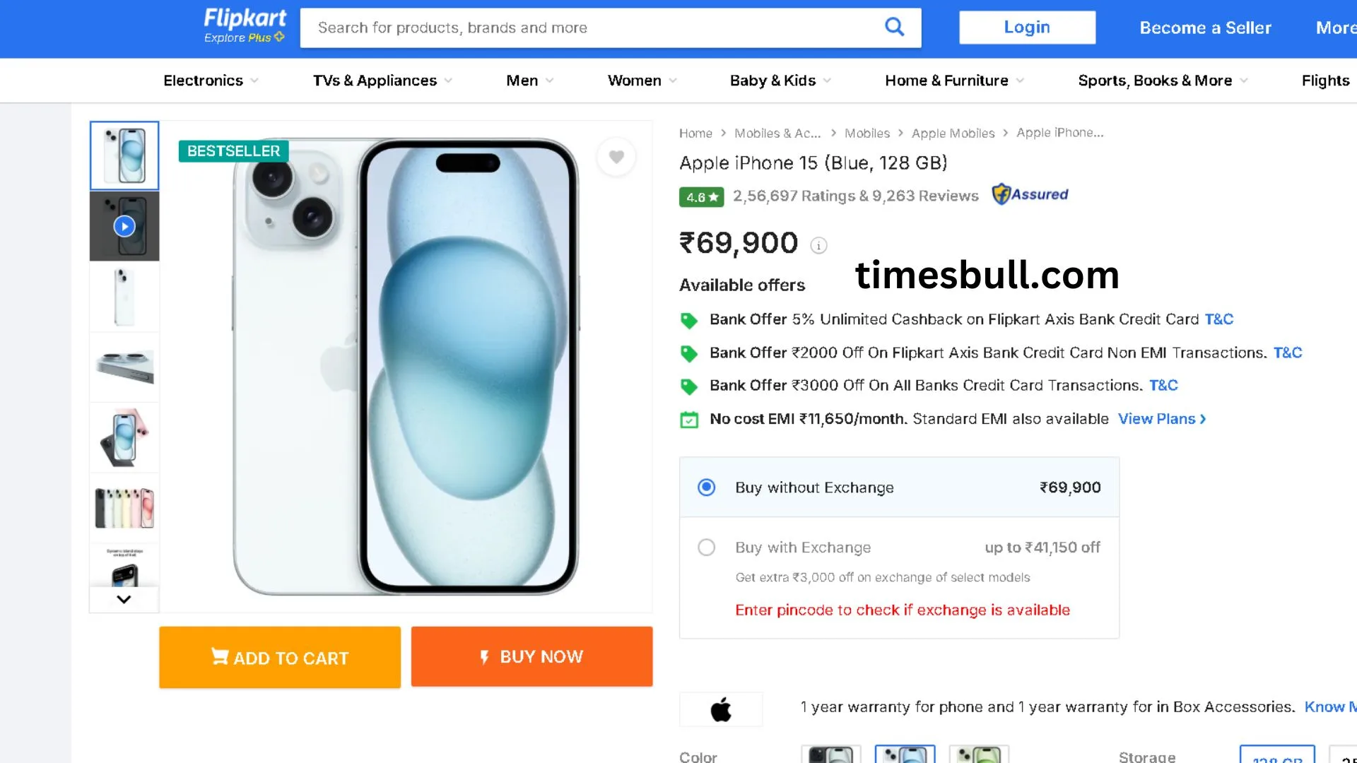 When using the Flipkart Axis Bank card to make a purchase, you will be eligible for 5% limitless cashback. A discount of up to Rs 2000, but it may be offered for non-EMI transactions. You may be eligible for discounts of up to Rs 3,000 if you use any other bank card. Also, you can get the iPhone 15 with a monthly starting payment of Rs 10,667.