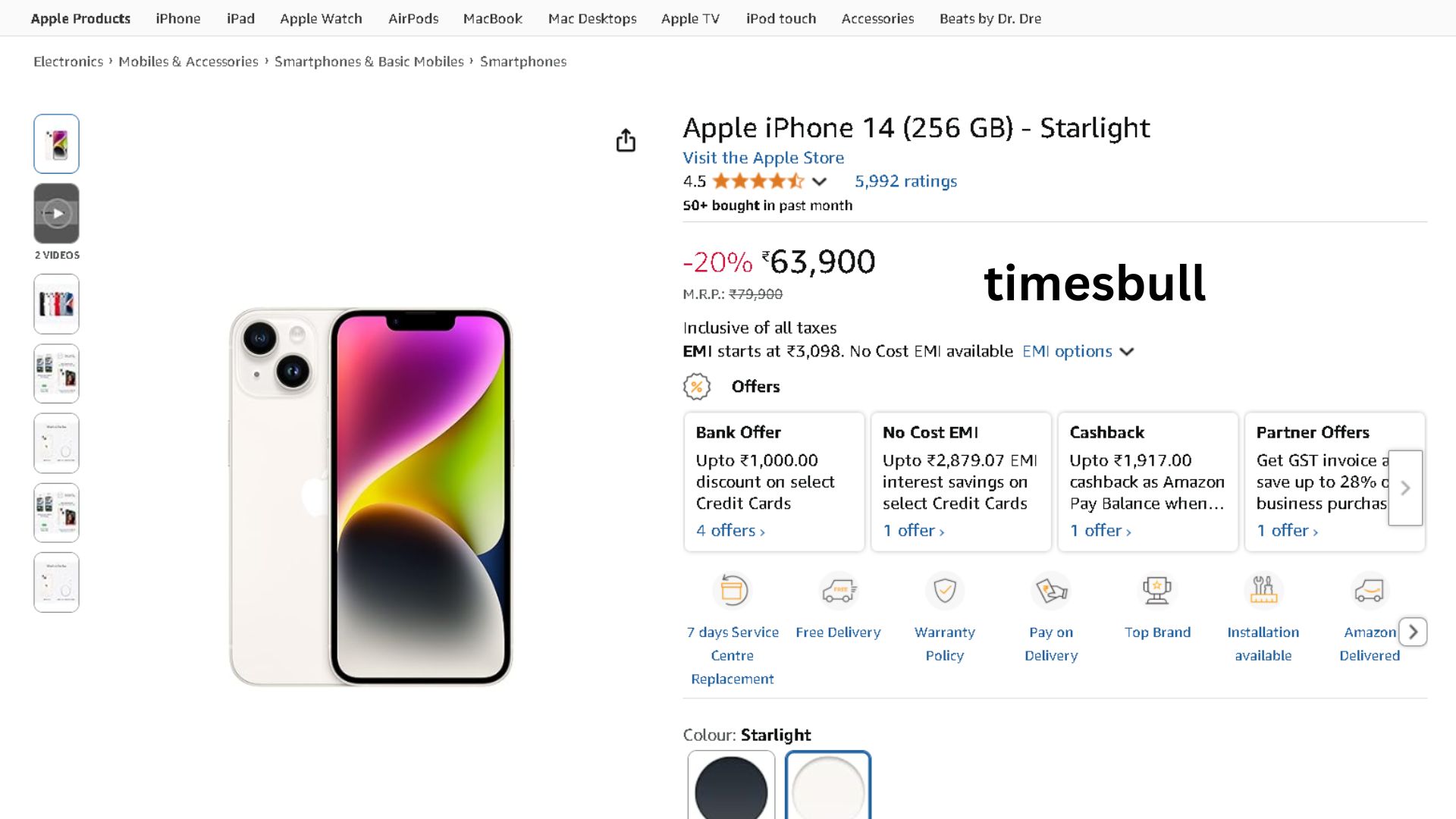 Amazon is giving its millions of consumers an amazing price on the iPhone 14 series. Amazon is selling the iPhone 14 256GB for Rs 79,999. But you may purchase it for a very modest price. Customers of Amazon are receiving a flat 20% discount on this. Its current price is just Rs 63,900 as a result of this promotion. Amazon