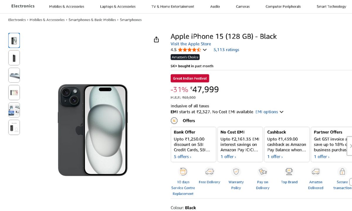 It is a fantastic deal to get the iPhone 15 for under ₹50,000. The iPhone 15 can be the greatest choice for you at the moment if you are not too thrilled about new features like Apple Intelligence and just want to experience a high-end iPhone. However, you would be better off buying the iPhone 16 if you want to experience the cutting-edge technology and Apple Intelligence features of the future.