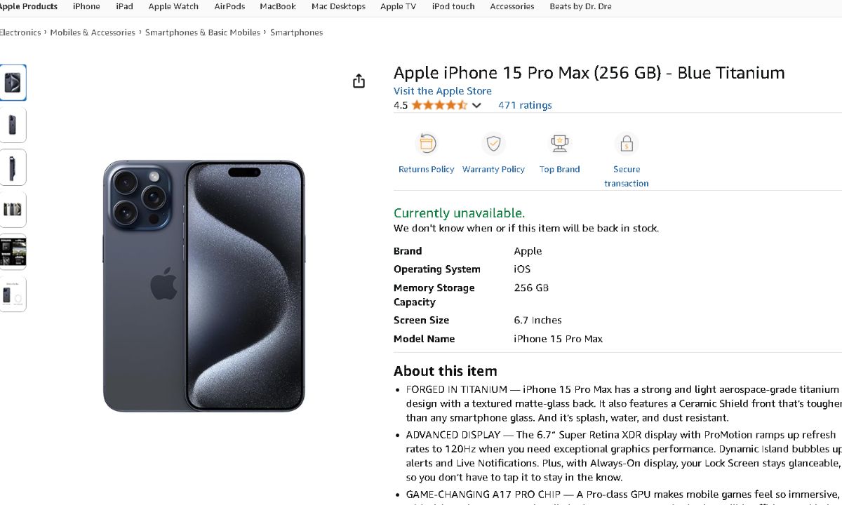 Prices & Deals on Amazon for the iPhone 15 Pro Max