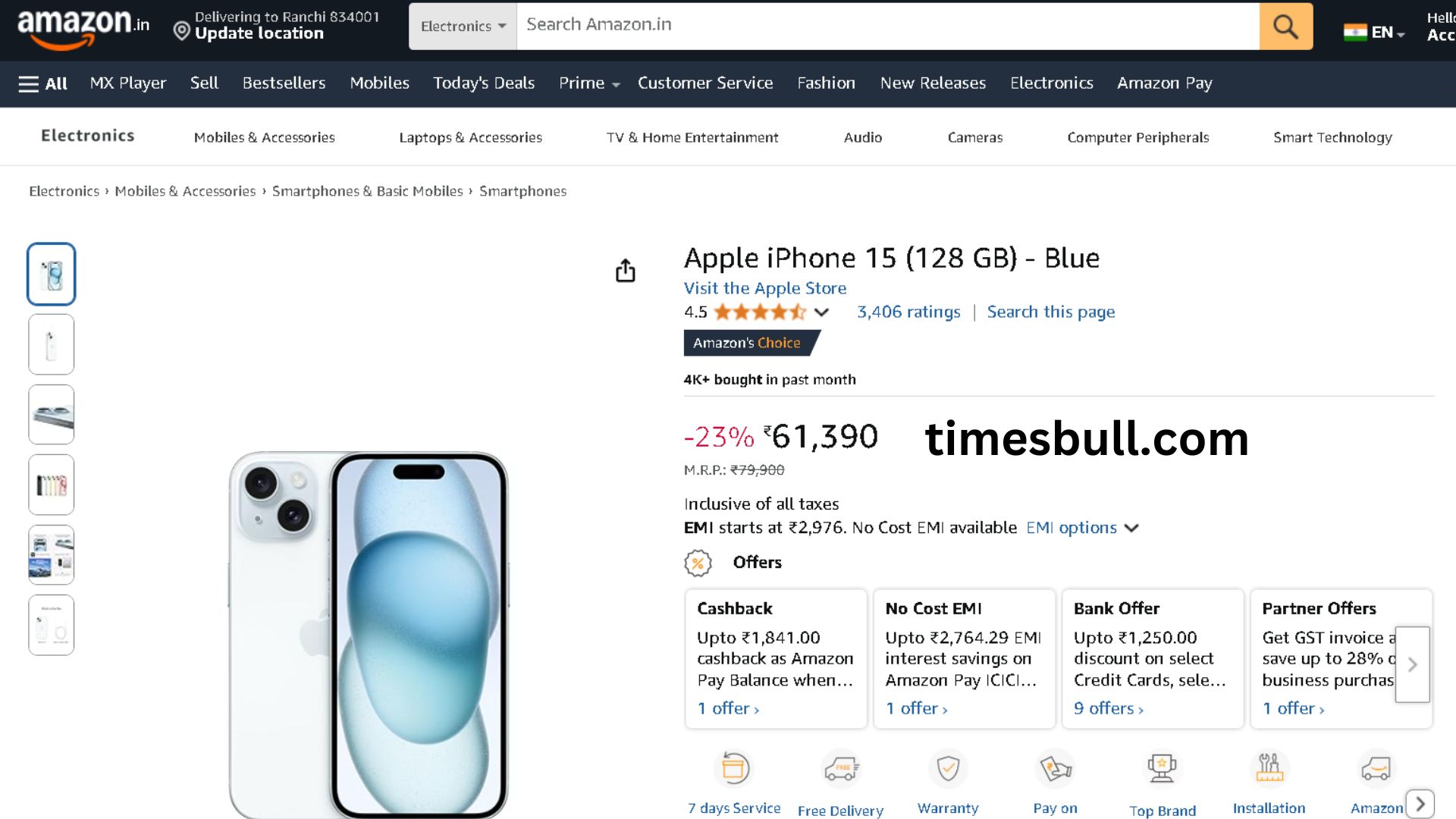 Let us now discuss Amazon’s most amazing deal. When buying an iPhone 15, Amazon is giving its consumers the largest exchange offer. Up to Rs 22,800 can be gained by exchanging your old smartphone. This high-end smartphone would only cost about Rs 38,000 if you take advantage of the entire offer. You must remember, too, that the amount of money you will receive in exchange will be determined on how well your old phone performs and looks.