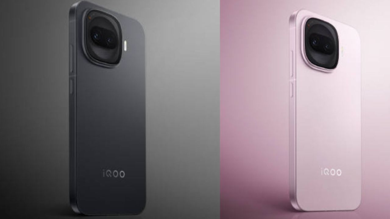 iQOO has officially revealed the rear design of the phone, showcasing a porthole-style camera module and flat metal edges. It will be available in four colour options, including pink, black, white, and blue.