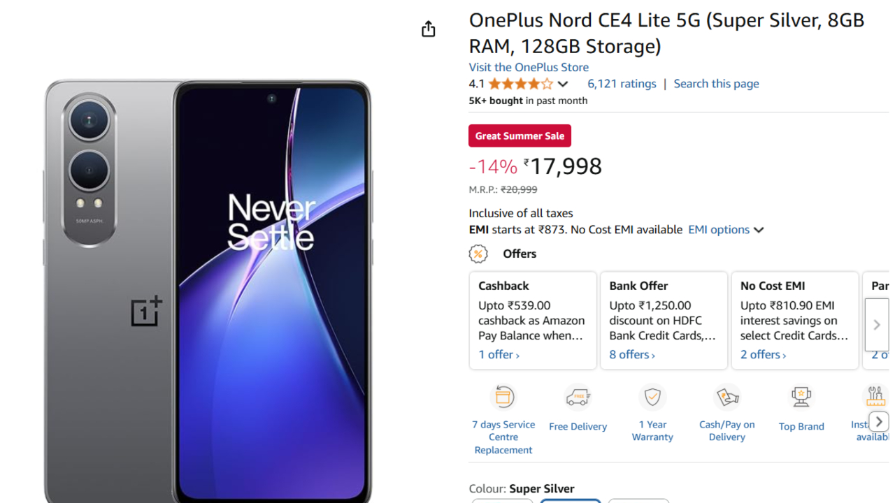 OnePlus Nord CE4 Lite 5G at a Discount : If you have been waiting for the right time to get a good phone, your wait is over. OnePlus Nord CE4 Lite 5G is on sale at discounted price during the Summer Session Sale on Amazon. The sale is on until 8 May 2025. Now, therefore, is the ideal time to purchase this great phone before the sale period ends.