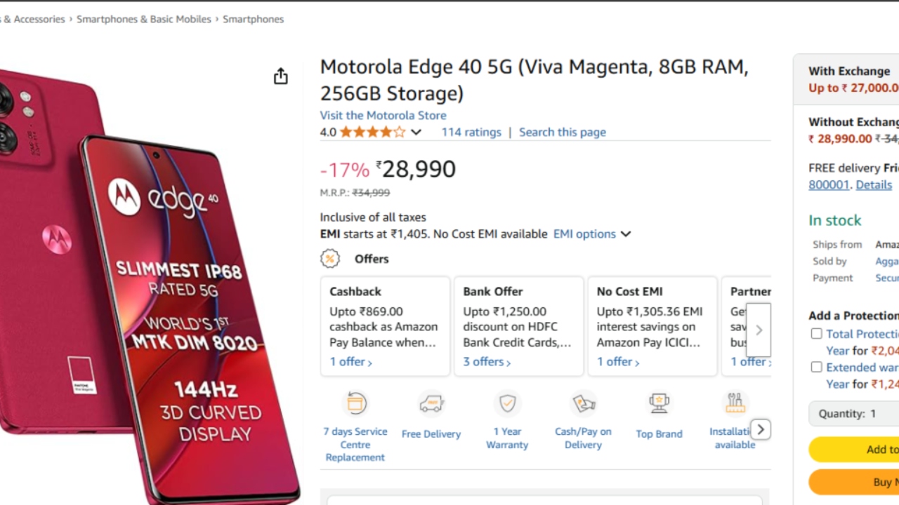 Motorola Edge 40 5G: Picture this, the phone of everything, in your pocket. The phone has with premium finish, premium performance, and a camera that captures every photo in crystal clear clarity. Now, just imagine that I were to tell you that this great phone is yours to keep for a price that cannot be beat, and that there are offers available to make it even better? Yes, you heard that right. The Motorola Edge 40 5G (2025) with Curved AMOLED, 144Hz display can be bought at a price that will leave you speechless. Continue reading for more details about this incredible deal.