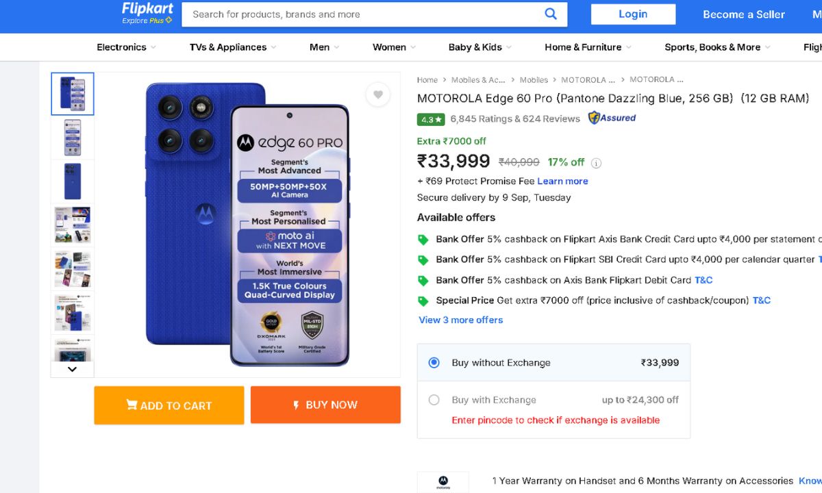 The Motorola Edge 60 Pro’s pricing has dropped greatly once more. This year, Motorola launched a high-end feature phone that is thousands of rupees less expensive. Even before the Big Billion Days Sale, which starts on September 23, you may get it for less money on Flipkart, an online retailer. This smartphone has 512GB of storage and 16GB of RAM, among other strong features. This Motorola phone is priced in the middle of the budget.
