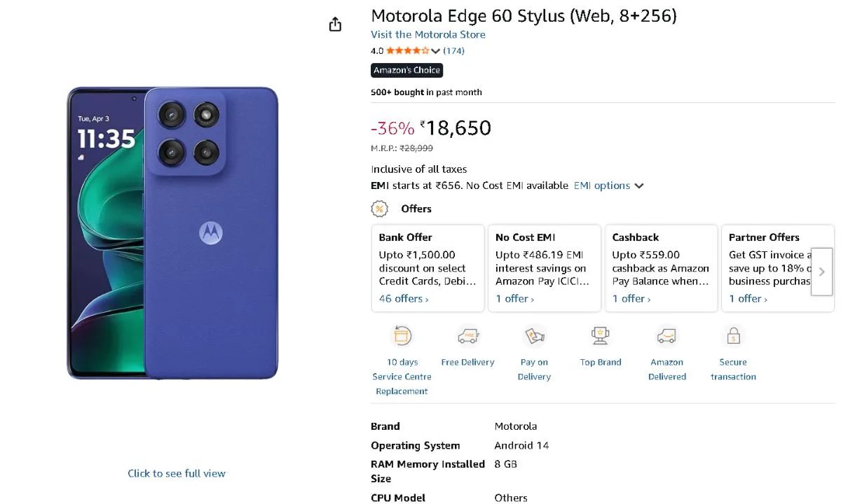 Amazon offers a Motorola Edge 60 Stylus deal.