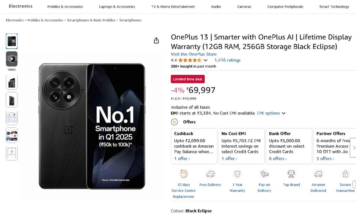 Even though the phone prices Rs 69,997 on Amazon without any discounts, bank deals can still save you up to Rs 5000. The phone now costs Rs 64,997 after this promotion. We would like to inform you that the ICICI Bank and RBL Cards are eligible for this discount. Also, the company offers a free lifetime screen upgrade warranty.