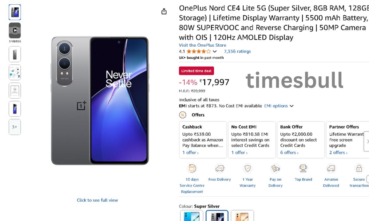 You can find a fantastic offer on Amazon India if you are looking for a OnePlus phone that prices between Rs 15 and Rs 20 thousand. The OnePlus Nord CE4 Lite 5G is currently on sale for this fantastic price. When it first went on sale, the phone model with 8GB of RAM and 128GB of internal storage priced Rs 19,999. With a price tag of Rs 17997, this phone is currently available on Amazon. You may purchase this phone with a flat discount of Rs 2,000 as part of the bank deal.