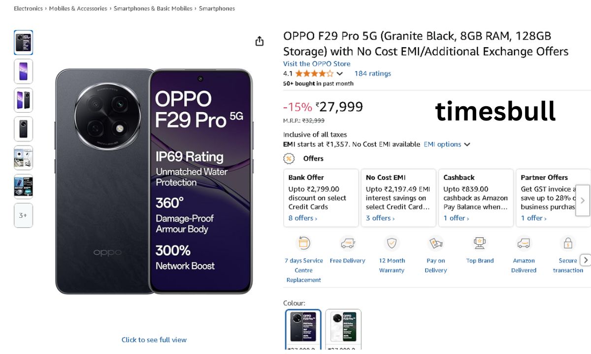 Amazon has some excellent offers if you are considering purchasing a waterproof phone with strong performance. This amazing discount is available on the Oppo F29 Pro. On Amazon India, the phone model with 12 GB of RAM and 256 GB of internal storage prices Rs 31999. You may purchase it in the offer with a Rs 3199 bank discount. This amazing offer is only available through June 30. Also, the company offers cashback over the phone up to Rs 959. The exchange deal offers a discount of up to Rs 29700.