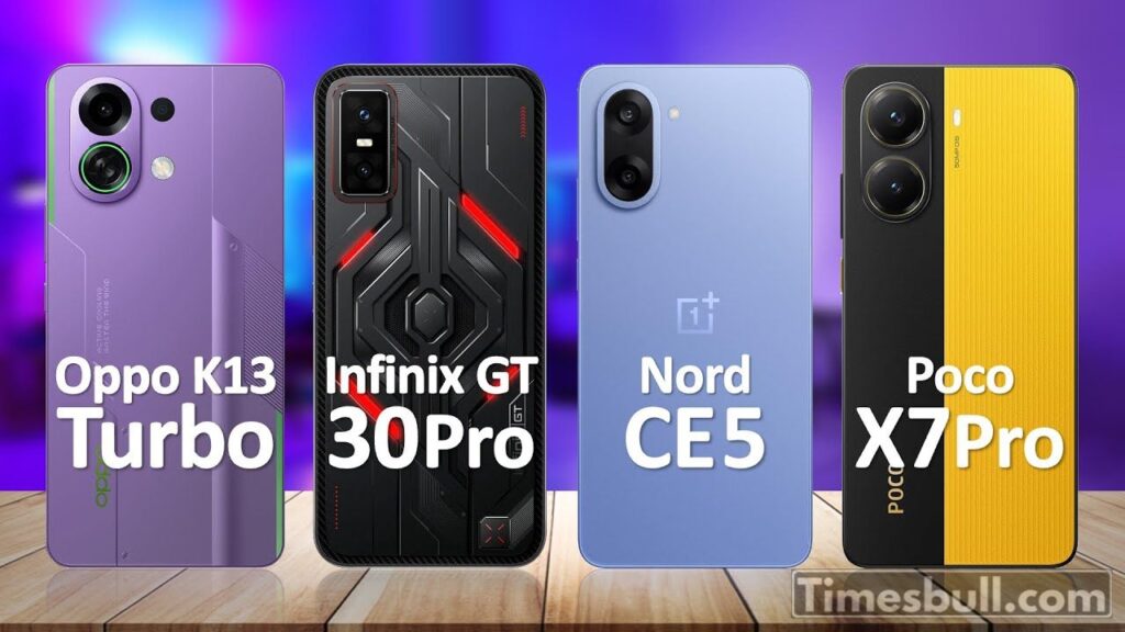 Oppo K13 Turbo vs Infinix GT 30 Pro vs OnePlus Nord CE 5 vs Poco X7 Pro: Smartphone lovers, this match is going to be quite interesting. Because here we are talking about four new fast-growing mid-to-upper mid-range phones – Oppo K13 Turbo, Infinix GT 30 Pro, OnePlus Nord CE 5, and Poco X7 Pro. All of them have their own killer features, and the price is also very competitive. So come on friends, let’s sit comfortably and see which phone has how much power, and which phone can become the perfect choice according to your style and needs.