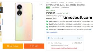 Actually, Flipkart is selling the Oppo Reno 8 5G for a low price. Flipkart lists it for Rs 29,999, while its 8GB RAM + 128GB storage version costs Rs 38,999. There is a 23% discount, or Rs 9000, on it. Additional price savings are possible if bank and exchange offers are also used.
