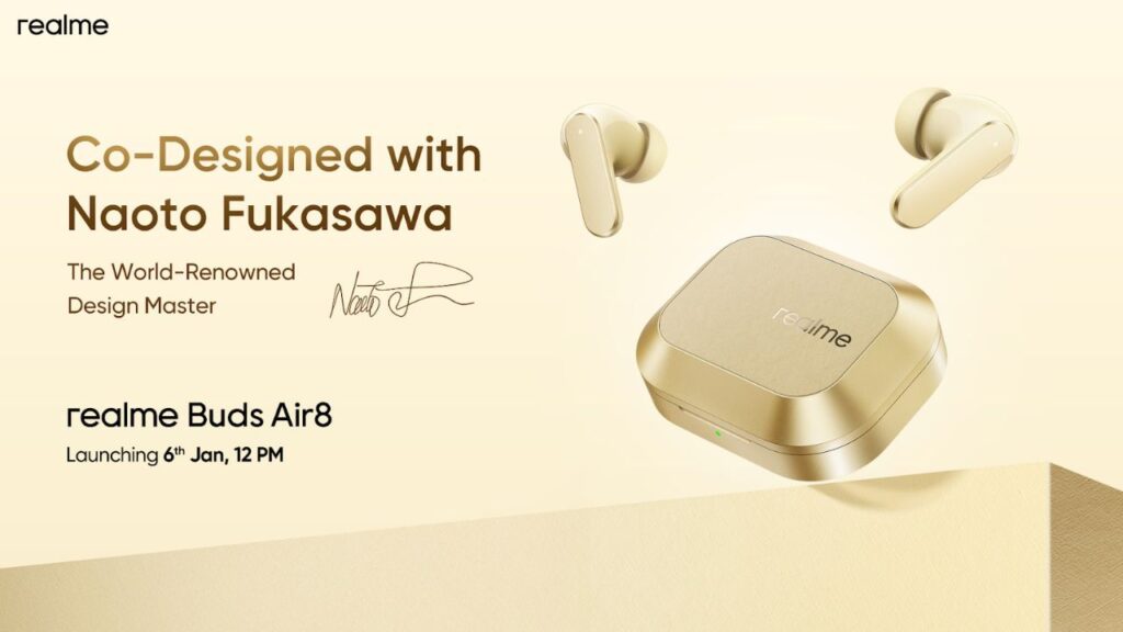 Realme Buds Air 8 Teased To Launch on January 6- Realme Buds Air 8 will be officially launched in India on January 6, 2026. The product page of Realme Buds Air 8 is now live on the Realme India website, Amazon India, and Flipkart.