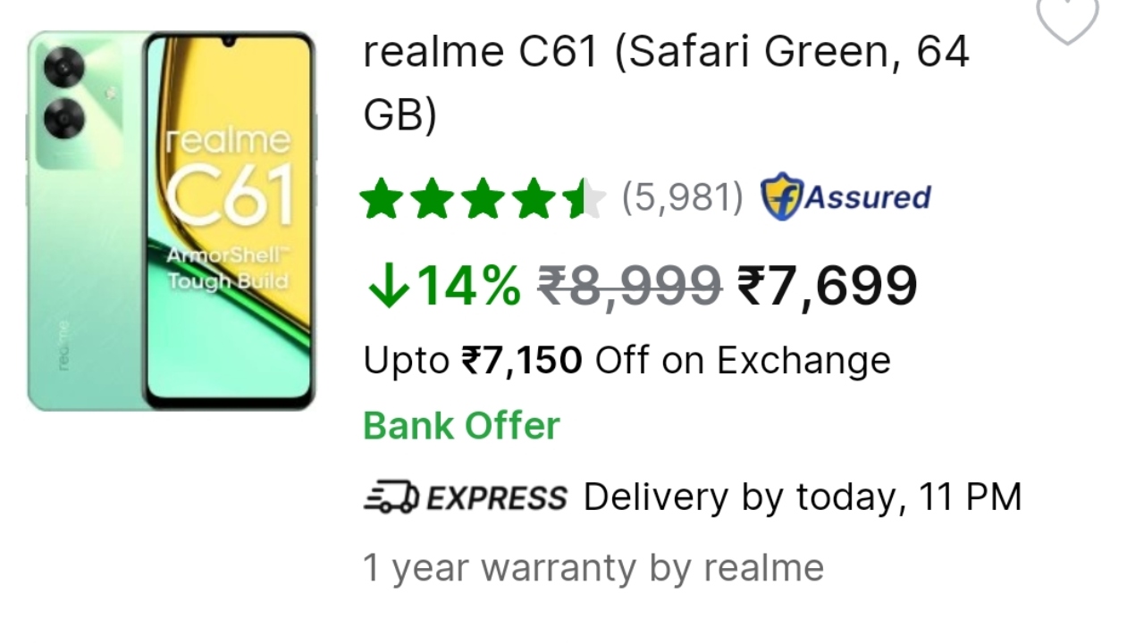 Realme C61 5G: Flipkart Discount Offers & New Price