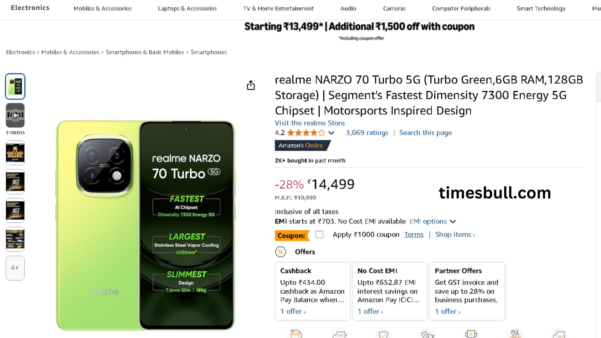 The Realme Narzo 70 Turbo 5G is a fantastic choice if you are looking to get a new phone for less than Rs 15,000. Its special feature is that it is offered with multiple prices during Amazon’s Live Great Summer Sale. This phone prices Rs 14,499 and comes with 128GB of internal storage and 6GB of RAM. You may purchase this phone during the sale with a Rs 1,000 coupon discount. You can purchase this phone for under Rs 13,500 thanks to this offer.
