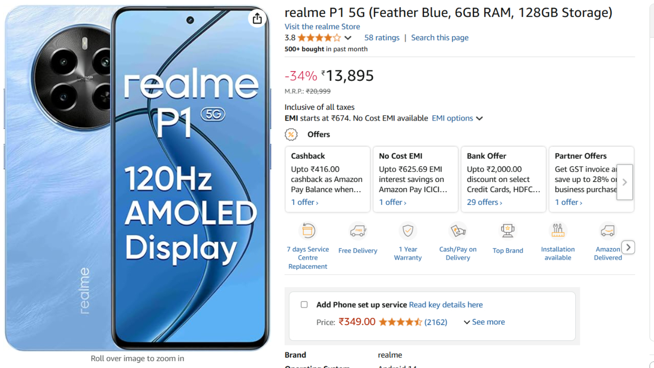 Realme P1 5G Discount :  you wish to buy a low-range phone but a phone packed with features, you can buy an incredible phone within your budget via Amazon today. Realme P1 5G, for example, is an excellent phone with fantastic features and can be had at highly discounted prices since the date of initial launch. Priced originally at ₹20,999, you can now purchase the phone on Amazon for ₹13,749. That’s an astonishing 35% lower price than what the feature-packed phone was charging.