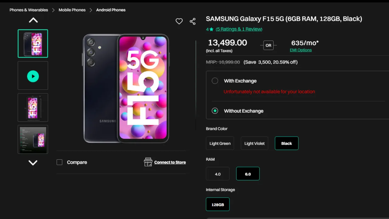 Samsung Galaxy F15 5G Offer : when it comes to looks, feel, and 5G speed, the Samsung Galaxy F15 5G stands tall upon all of them. Priced at just ₹16,999, thanks to the Croma offer, it would an unbelievable price of Just ₹13,499-that is a 21% discount. Go for that trade-in of your old device, and get an added discount of up to ₹11,474. Who’d say actually, could it-be that simple to change a phone?