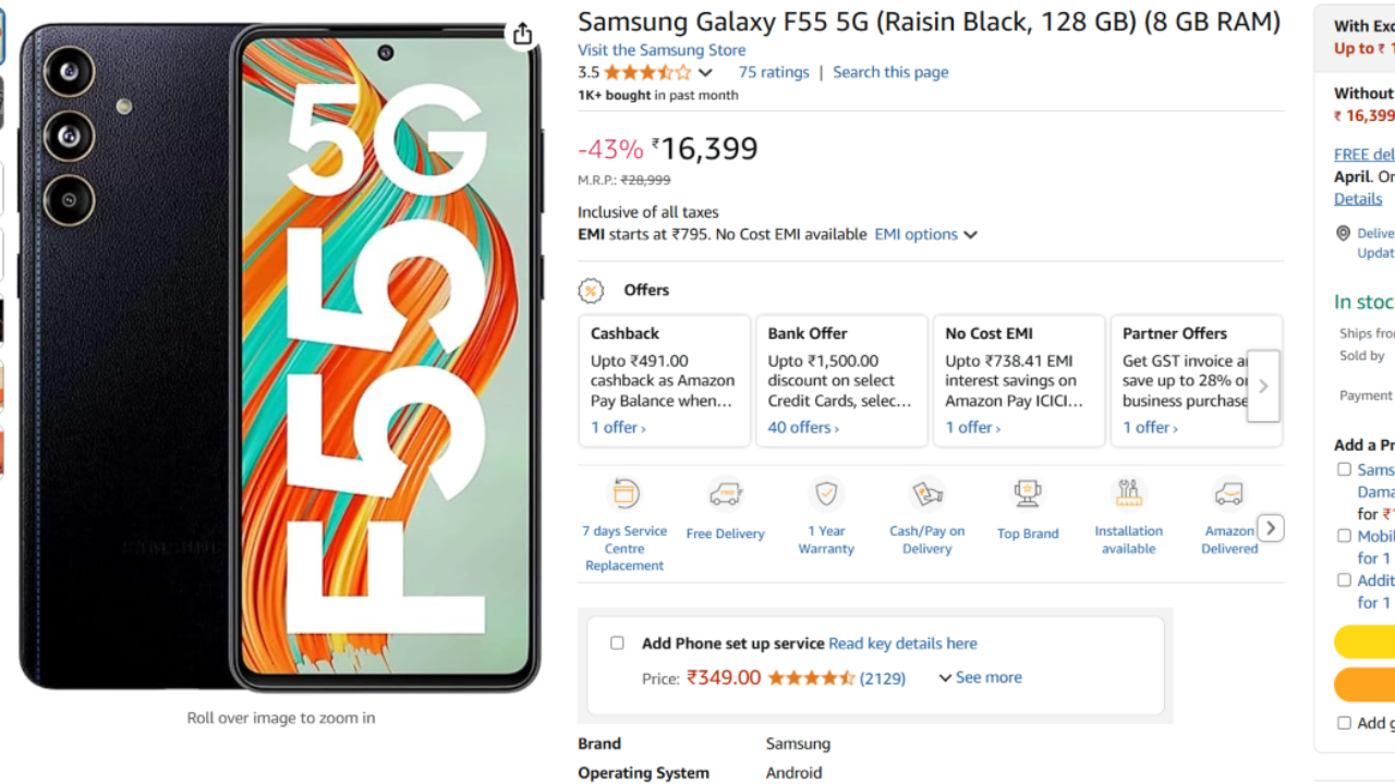 Samsung Galaxy F55 5G offers on Amazon : Just imagine a smartphone packed with style, speed, and smart features, and now, at a jaw-dropping price,, The Samsung Galaxy F55 5G is available for just Rs 1,888. Yes, you heard that right. This phone doesn’t just deliver powerful performance, it also looks super sleek and premium. Now all you need to know is how to grab this unbeatable offer before it’s gone. So what are you waiting for? Deals like this don’t come around every day.