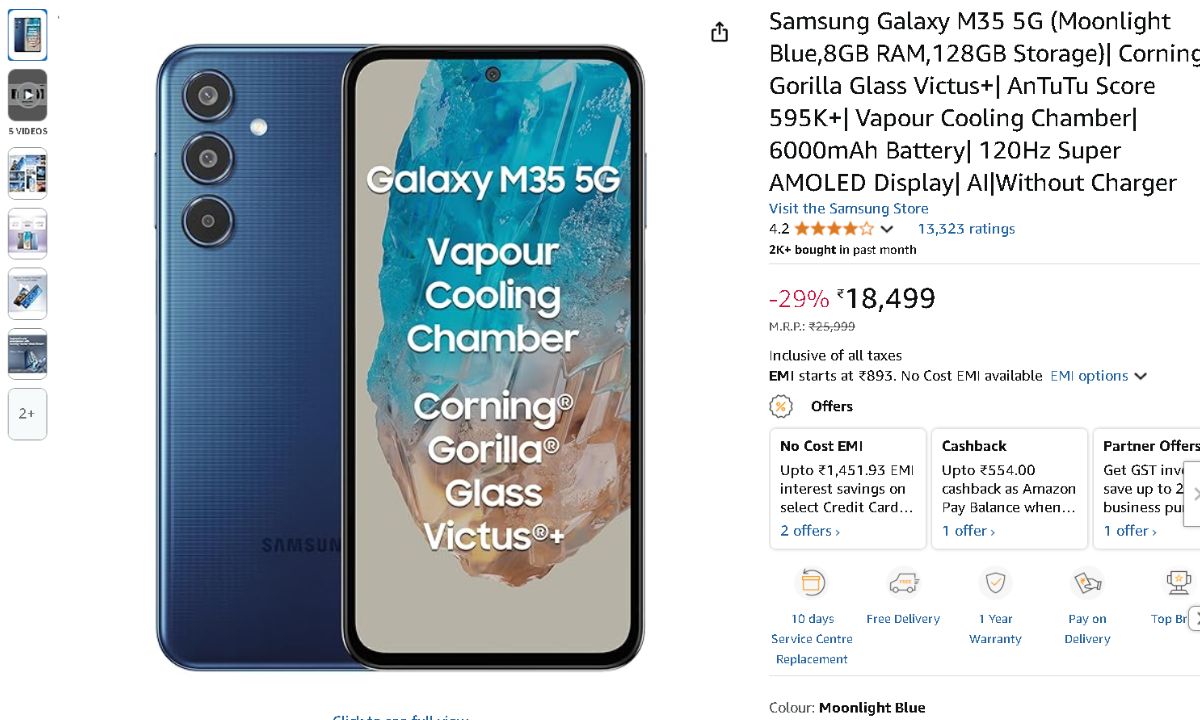 You have some wonderful news if you are considering buying a Samsung phone. Samsung’s 5G phone, which launched last year, is now 3 thousand rupees less expensive than it was at debut. The Samsung Galaxy M35 5G is the subject of our conversation. The model of this phone with 128GB of internal storage and 8GB of RAM priced Rs 21499 when it was first released. With a price tag of Rs 18449, this phone is currently available on Amazon India. Also, you can buy this phone and receive up to Rs 924 in cashback. Also, a fantastic exchange incentive is offered over the phone. Know that the brand, the company’s exchange policy, and the state of your old phone will all affect the amount of the discount offered by the exchange offer.