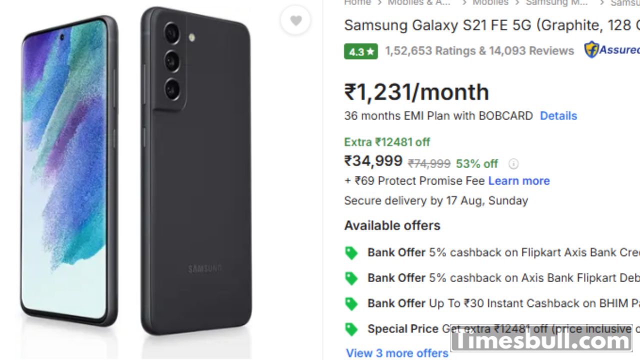 Currently the price of Samsung Galaxy S21 FE 5G has been kept at ₹ 34,999, which is its original M.R.P. This is a whopping 53% less than ₹74,999. And the fun part is that in the previous sales, this phone has fallen to just ₹25,745, that is, a tremendous 57% discount! If you grab the deal at the right time, then this is a flagship phone near the budget.