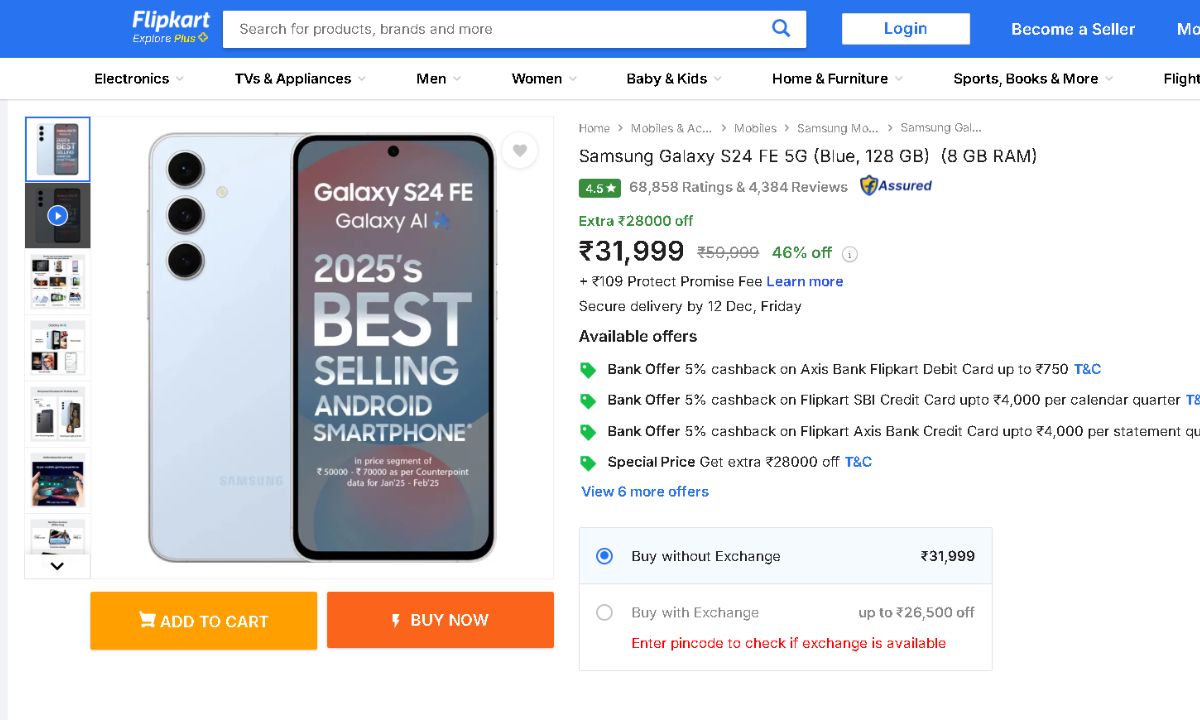 Samsung Galaxy S24 FE 5G: The price of the Samsung Galaxy S24 FE has dropped greatly once more. You may buy this Samsung mid-budget phone for half of its original price. The big price drop occurs during Flipkart’s ongoing year-end “Buy Buy 2025” offers. When buying a phone, bank offers are often available. Flipkart will be offering this sale from December 5th to December 10th. This Samsung phone has a strong processor and camera.