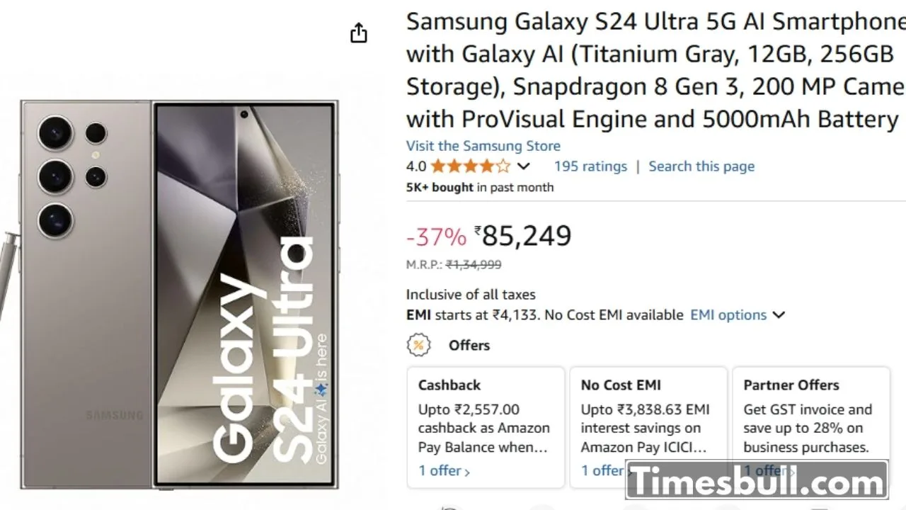 At present, Galaxy S24 Ultra can be purchased at a much lower price than its launch price, but this offer is for a limited time. Also, customers are also being given options like bank discount, cashback and no-cost EMI, which makes this deal even more affordable.