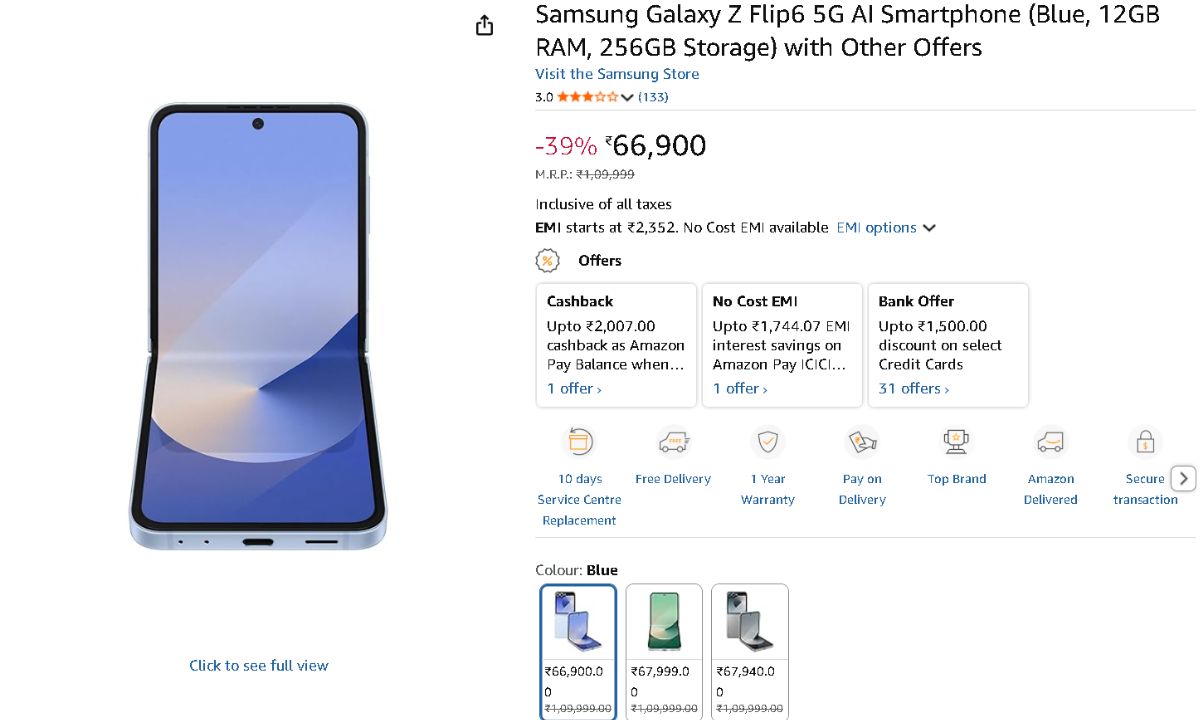 Samsung Galaxy Z Flip 6: The Samsung Galaxy Z Flip 6 may be the ideal smartphone to complete your search if you have been thinking about buying a device that flips and offers you a flagship experience at the same time. The gadget was initially priced at Rs 1,09,999 in India, but it is currently on sale at an enormous discount of more than Rs 43,000. Customers may buy a 6.7-inch Dynamic AMOLED 2X primary panel with FHD+ resolution and support for a refresh rate of 120 Hz at this pricing point. In addition, users receive seamless performance, a premium in-hand feel, Galaxy AI capabilities, and a twin camera setup on the back. The Samsung Galaxy Z Flip 6 Amazon offer operates as follows.