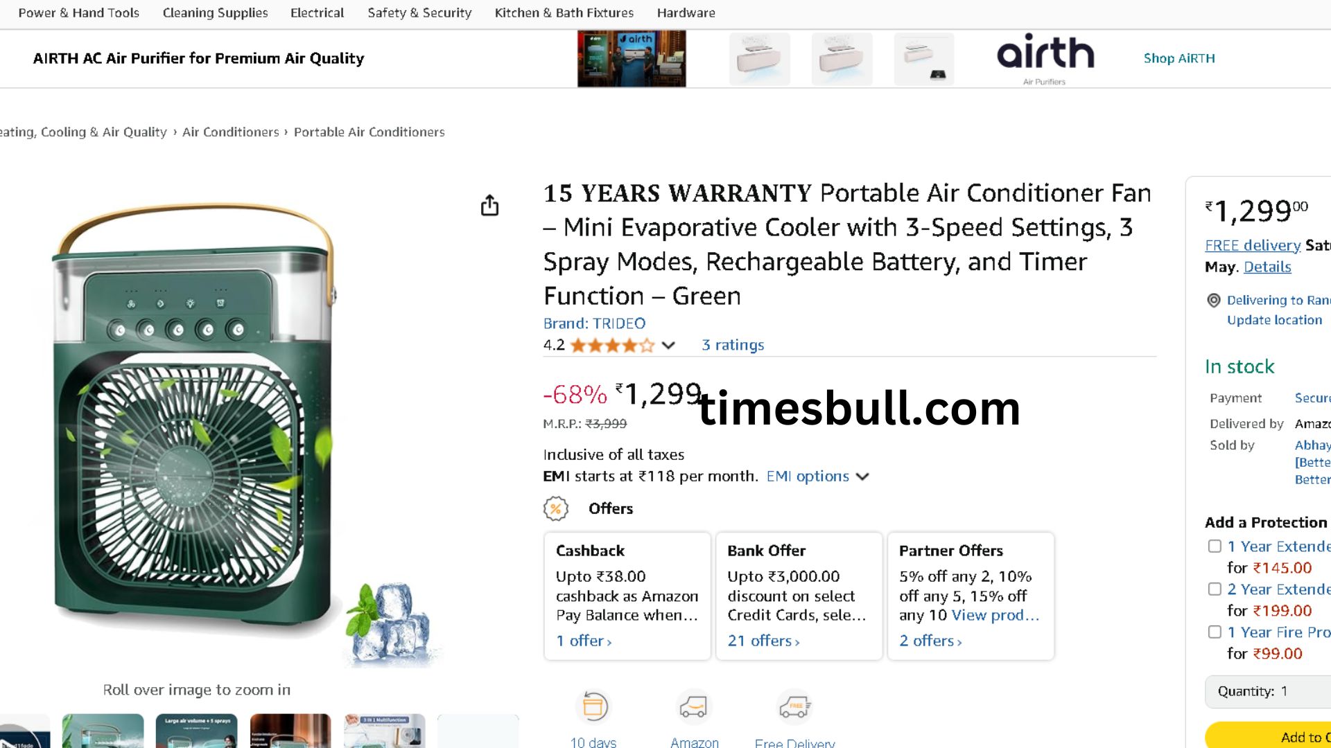 The price of this AC fan, which is covered by a 15-year warranty, is just Rs 1,299 on Amazon India. Some bank offers are available for the purchase of this AC. According to the details provided on Amazon India, delivery is free and there is a 10-day return policy for this air conditioner.