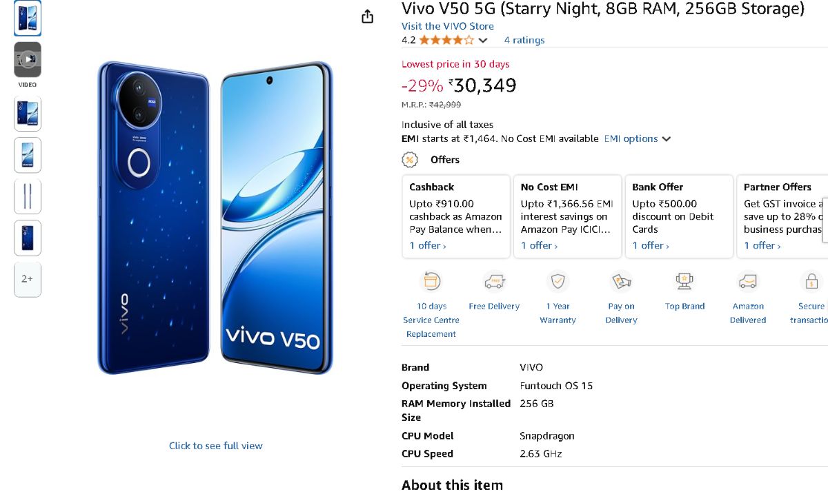 Vivo V50 5G: If you want to buy a smartphone with a 50MP selfie camera, the Vivo V50 5G discount offer during Vijay Sales may be a fantastic chance for you. For this phone, the company is offering bank and exchange deals in addition to a flat discount. The 8 GB RAM and 256 GB internal storage model is priced on Amazon at Rs 34,999, but it is currently available for purchase with a Rs 2,000 straight discount.