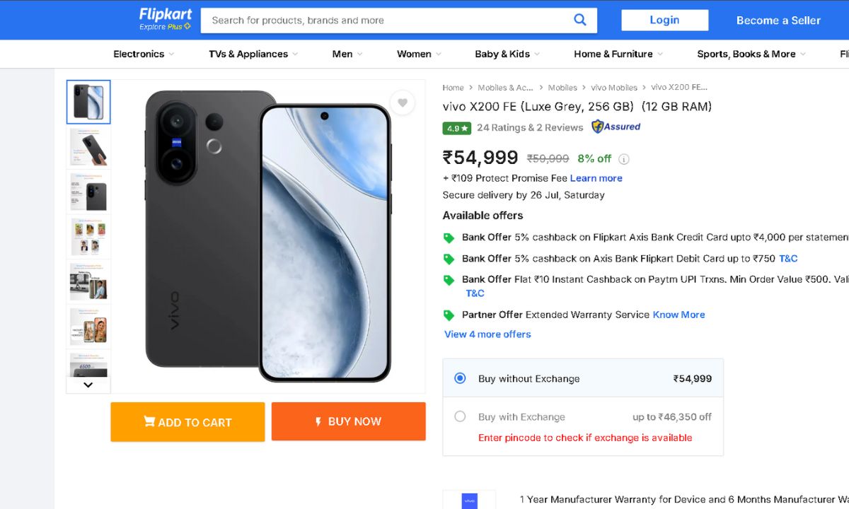 Vivo’s compact flagship smartphone, the Vivo X200 FE, in the Indian market. Flipkart and Vivo’s official website are selling this phone. This Vivo flagship phone has a fantastic Zeiss-tuned triple rear setup. It features a 50MP front camera, a 50MP periscope telephoto camera, and a 50MP primary camera. Let us go over the deals and discounts that are available during the first sale in more detail: