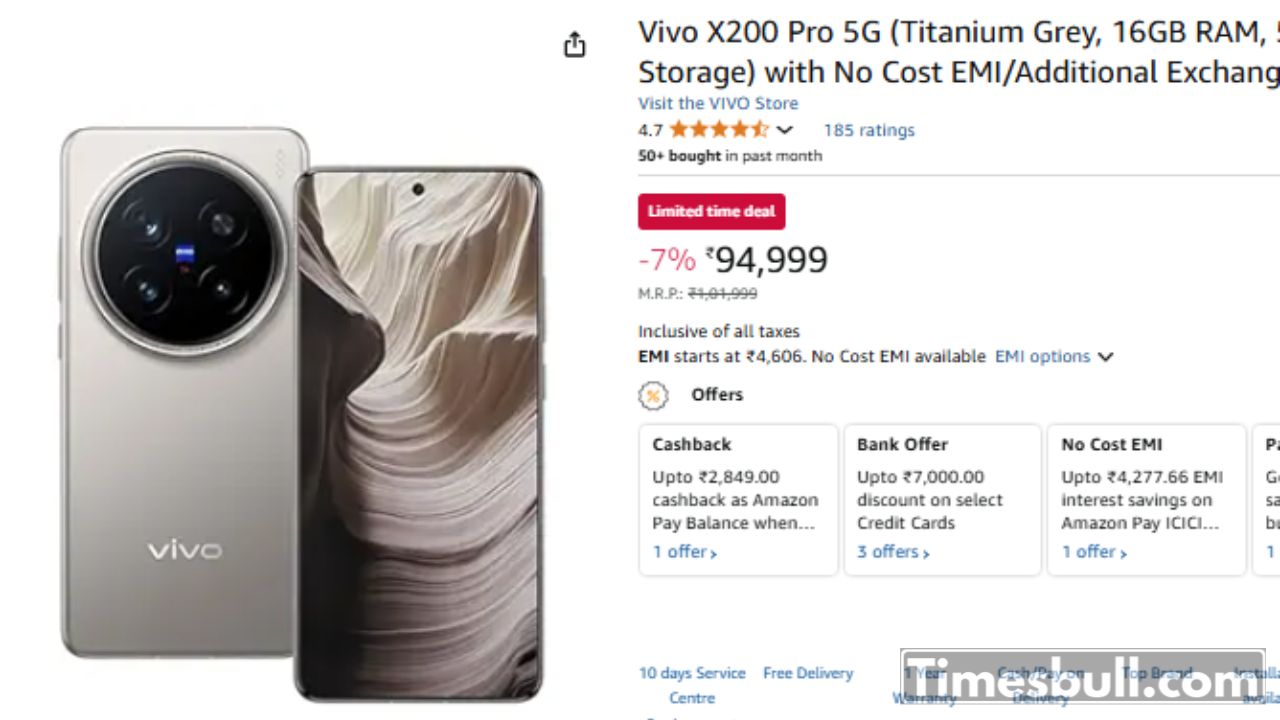 The price of Vivo X200 Pro 5G is of the premium segment, but the offer going on at this time on Amazon makes it quite affordable. The variant of this phone with 16GB RAM and 512GB storage is now available with a direct discount of ₹ 7,000. If you have an Axis Bank card, you will get an instant discount of ₹ 7,000, and if you have an Amazon ICICI Bank card, you can also get a discount of ₹ 7,000 and cashback up to ₹ 2,849.