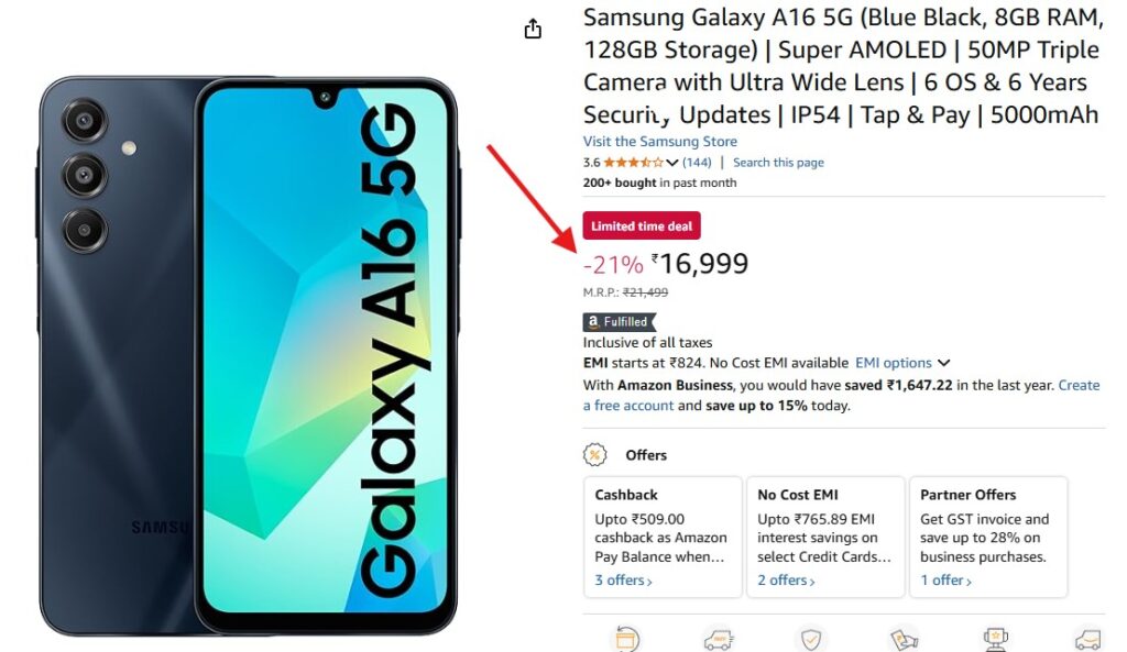Samsung Galaxy A16 5G पर मिल रहा है धांसू डिस्काउंट