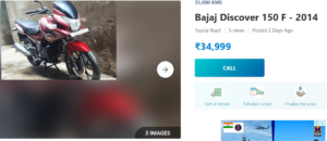 OLX एक ऐसी वेबसाइट है, जहाँ कई बाइक्स सस्ते दाम में बिकती हैं और अच्छी कंडीशन में होती हैं। इसी तरह, Bajaj Discover 150 F भी मात्र ₹34,999 में लिस्टेड है। यह 2014 मॉडल की बाइक अब भी शानदार कंडीशन में है और केवल 35,000 किलोमीटर चली है। अगर आप इस बाइक को खरीदना चाहते हैं, तो OLX पर विजिट कर सकते हैं।