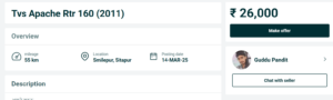 अगर आपका बजट कम है, तो आप इसे OLX पर जाकर खरीद सकते हैं। इस बाइक को मात्र ₹26,000 में बेचा जा रहा है, जो काफी किफायती है। यह बाइक 2011 मॉडल है और अब तक अच्छी कंडीशन में है। तो यदि आप सस्ते में इसे लेना चाहते हैं, तो आज ही OLX पर विजिट करें और इसे खरीद सकते हैं।