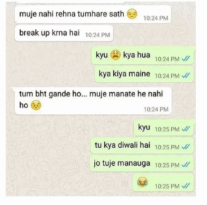 इस तस्वीर को देखकर ऐसा लग रहा है कि लड़की अपने बॉयफ्रेंड से किसी बात पर बहुत नाराज है और गुस्से में उसे रिश्ता तोड़ने की धमकी दे रही है। लेकिन इस बार लड़का भी कम नहीं है और ऐसा जवाब देता है कि अगली बार उसकी गर्लफ्रेंड रिश्ता तोड़ने से पहले दस बार जरूर सोचेगी। अगर आपकी गर्लफ्रेंड भी आपसे नाराज होती है तो ये तरीका आपके काम का है बॉस..!! उफ़! लड़कियों के नखरे बड़े अजीब होते हैं। वो उतनी शॉपिंग नहीं करतीं, जितनी सेल्फी लेती हैं। अब आप इस तस्वीर से अंदाजा लगा सकते हैं।