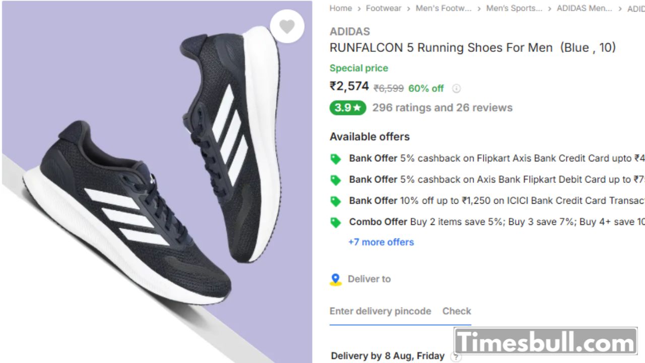 Now let’s talk about the most in demand shoe of Adidas, which is Runfalcon. This shoe is a perfect combo of both performance and comfort. Runfalcon 5 is available in Flipkart sale for just ₹2,772, whereas its original price was ₹6,599. This means an amazing discount of almost 57%! In this shoe you will get lightweight EVA cushioning that provides soft support all day long, whether you are walking or running.