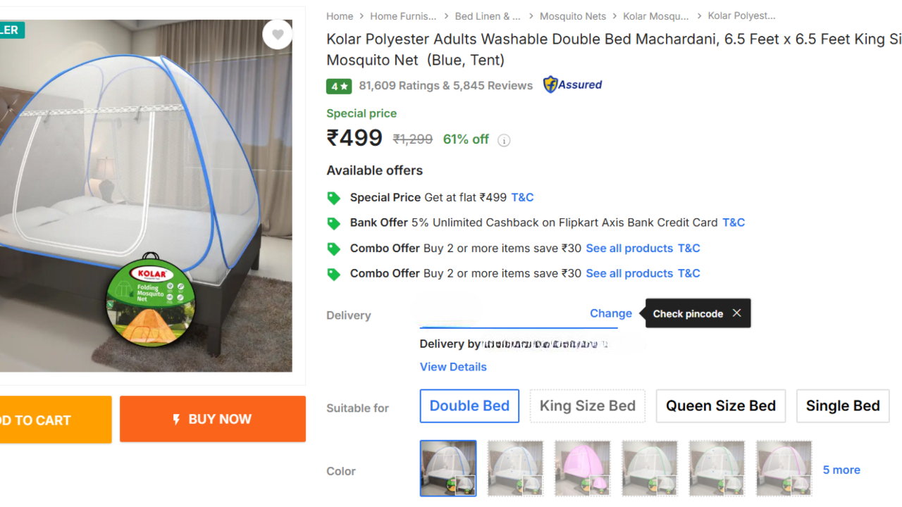 Flipkart is offering a huge discount on this useful product. It was originally priced at ₹1,299, but now it will be just ₹499. That is more than 61 % discounted. It is a nice bargain if you are looking for a good mosquito net and also want to save your money. Such deals do not stay for long, though, so it is nice that you buy it before it becomes more expensive again.