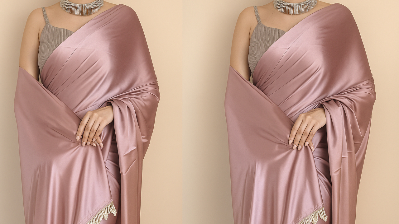 SATAZ Rose Gold Satin Silk 1-Minute Saree : Love sarees but despise the bother of having to drape them to perfection? We have something enchanting up our sleeves for you Meet the beautiful Rose Gold Satin Silk Saree which you can slip into within a minute. No endless tugging, no knotted pleats—just hassle-free, effortless glamour. And the icing on the cake? It’s on sale today on Amazon for a staggering 81% off. Want to have a stylish, convenient piece in your closet? Today’s the day to do it.