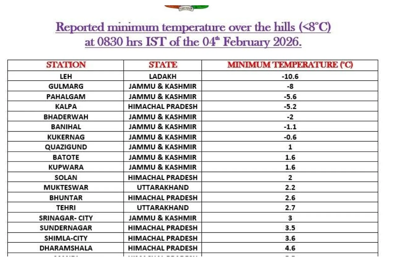 — India Meteorological Department (@Indiametdept) February 4, 2026