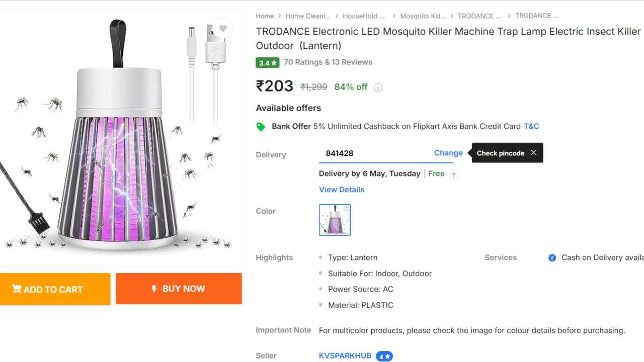 TRODANCE Electronic LED Mosquito Killer Machine : nFed up of mosquitoes buzzing at night when you are sleeping? You might be searching for the TRODANCE Electronic LED Mosquito Killer Machine, and if so, well, hop aboard. It is intelligent, easy to operate, and now you can obtain it on Flipkart at an amazing discount. While it originally cost ₹1,299, now you can obtain it for ₹203. That is an incredible 84% discount.