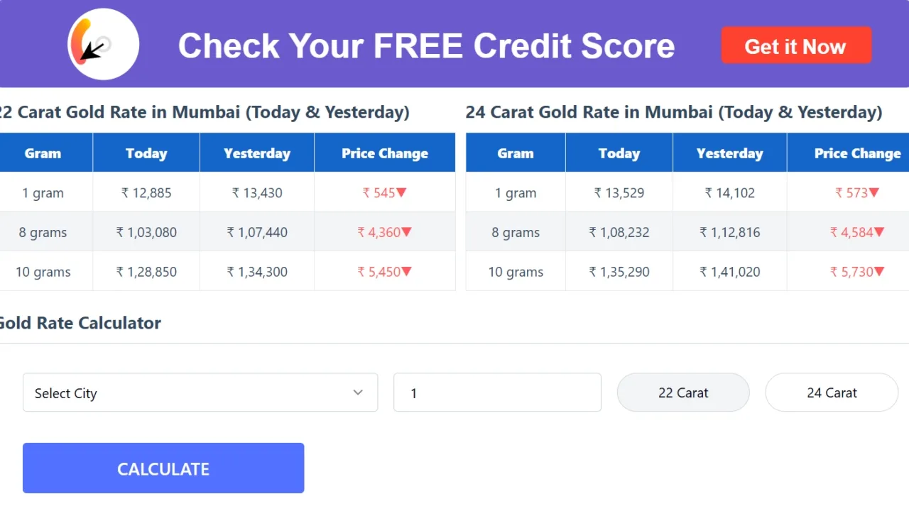 In Mumbai, the capital of Maharashtra, 22-carat gold was recorded at ₹128,850 per 10 grams—a decrease of ₹5,450. Here, the price of 24-carat gold appears to be trending at ₹135,290 per tola, following a total decline of ₹5,730. On the previous day, Monday, the price of 22-carat gold was ₹134,300 per tola, while the rate for 24-carat gold was seen trending at ₹141,020 per tola.