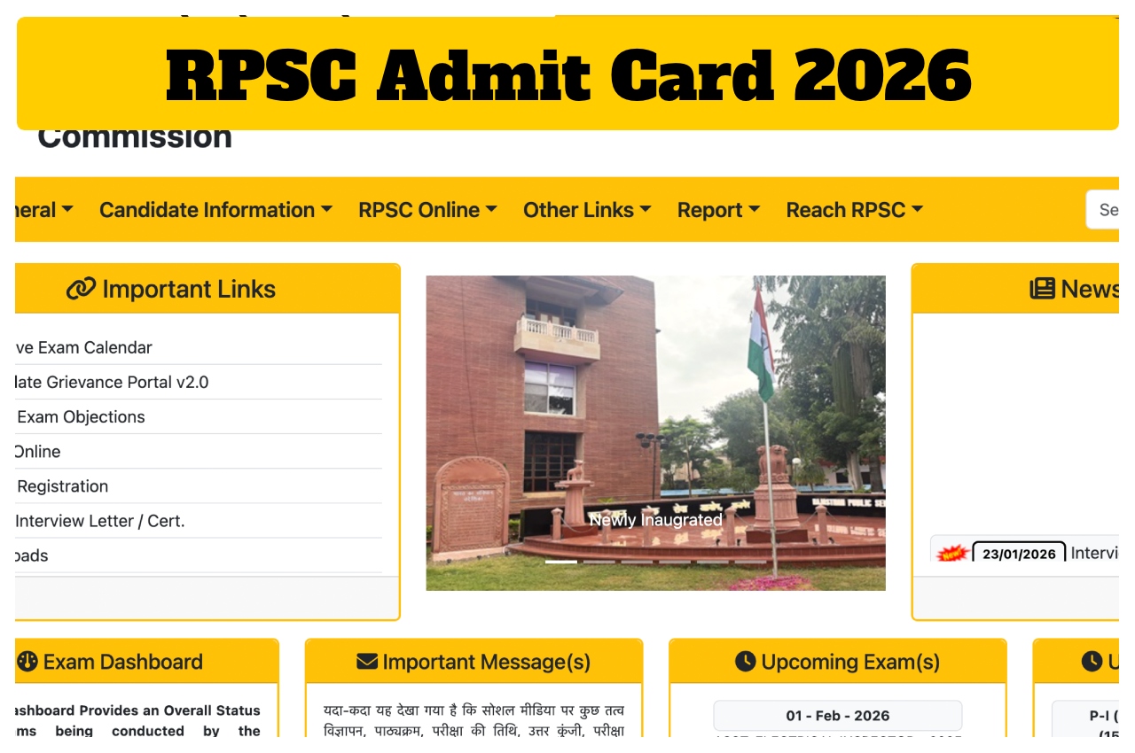 RPSC Admit Card 2026 Out Soon: The Rajasthan Public Service Commission (RPSC) is scheduled to release the admit cards for