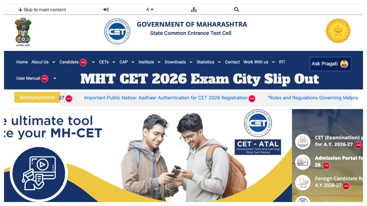 MHT CET 2026 Exam City Slip Out- Link Active at cetcell.mahacet.org; Check Your Exam Center Today