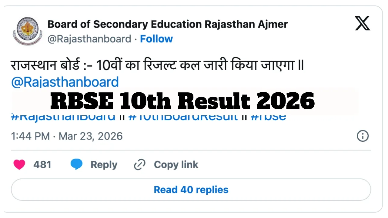 RBSE 10th Result 2026 LIVE Update: The Rajasthan Board of Secondary Education (RBSE) will release the Class 10 results tomorrow, March 24. On the Board’s official ‘X’ (formerly Twitter) account, students have been advised to keep their roll numbers ready. The results will be officially announced at a press conference in the presence of the Education Minister and the Board Chairman. Once the results are released, download links will be activated on the official websites: rajeduboard.rajasthan.gov.in and rajresults.nic.in.