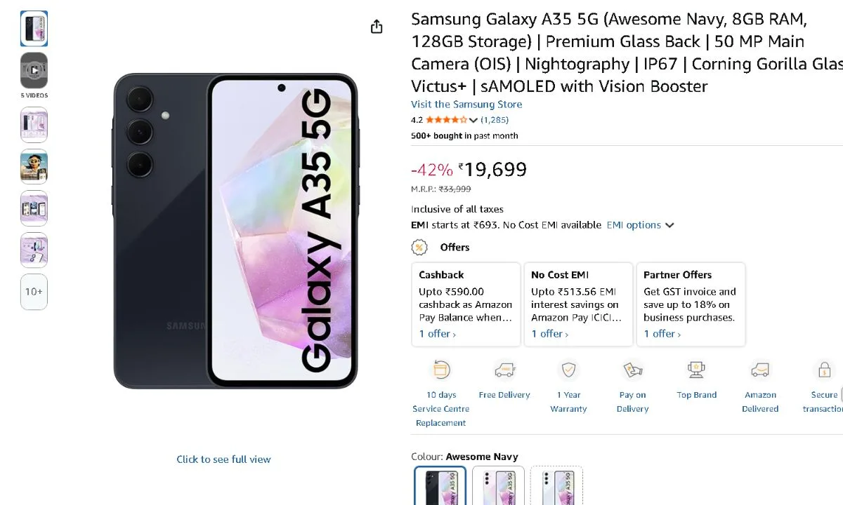 The Samsung Galaxy A35 5G is a fantastic choice if you are searching for a mid-range phone with flagship-like features. The 50MP OIS camera on this Samsung phone keeps images and videos from blurring. This phone also has Google’s ‘Circle to Search’ feature. Notably, the Samsung Galaxy A35 5G is now available for a flat discount of more over ₹10,000 on the online retailer Amazon. Offers for exchanges and cashback could lower the cost even more. Let us examine all of the offers and features that this device has to offer.